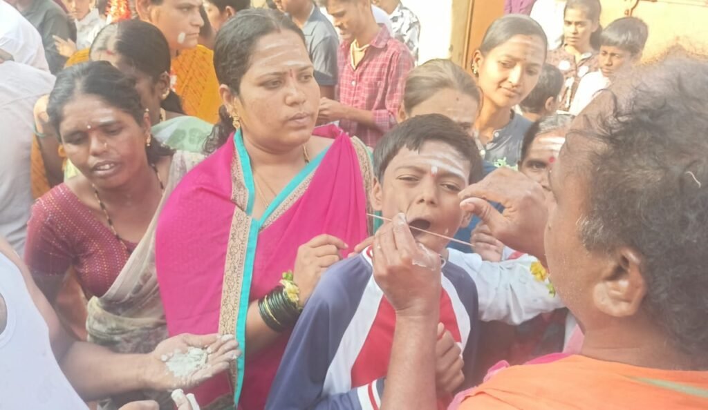ಈ ಸಂದರ್ಭದಲ್ಲಿ ವೀರಭದ್ರ ದೇವರನ್ನು ಮನೆದೇವರನ್ನಾಗಿಸಿಕೊಂಡ ಯುವಕರು ಮತ್ತು ಮಹಿಳೆಯರು ಚೂಪಾದ ದೊಡ್ಡ ಶಸ್ತ್ರ (ತಾಮ್ರದ ಸೂಜಿ)ಯನ್ನು ಯುವಕರು ಕಪಾಳಕ್ಕೆ ಚುಚ್ಚಿಸಿಕೊಂಡರೆ ಮಹಿಳೆಯರು ತಮ್ಮ ಕೈ ಮೇಲ್ಬಾಗದಲ್ಲಿ ಚುಚ್ಚಿಸಿಕೊಂಡು ಭಕ್ತಿ ಸಮರ್ಪಿಸಿದರು. ಕೆಲ ಯುವಕರು ಗಂಟು ಗಂಟಾದ ದಾರವನ್ನು ಸೂಜಿಯೊಂದಿಗೆ ಚುಚ್ಚಿಸಿಕೊಂಡು ಸಾಮೂಹಿಕವಾಗಿ ನೃತ್ಯ ಮಾಡುತ್ತಾ ಸಾಗಿದ್ದು ನೋಡುಗರನ್ನು ರೋಮಾಂಚನಗೊಳಿಸಿತು ಮನಗೆದ್ದಿತು.