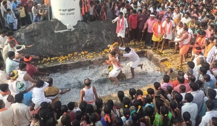 ವರದಿ: ಶಿವರಾಜ್ ಕನ್ನಡಿಗ ಕೊಟ್ಟೂರು ಪಟ್ಟಣದ ಶ್ರೀ ಕೋಟೆ ವೀರಭದ್ರೇಶ್ವರ ಸ್ವಾಮಿ ರಥೋತ್ಸವ ನಿಮಿತ್ಯವಾಗಿ, ಶನಿವಾರದಂದು ವಿವಿಧ ಬಗೆಯ ಧಾರ್ಮಿಕ ಕಾರ್ಯಕ್ರಮಗಳು ಜರುಗಿದವು. ಬೆಳಿಗ್ಗೆ ಗಂಗೆಯನ್ನು ಪೂಜೆಗೈದು ದೇವಸ್ಥಾನಕ್ಕೆ ಭಕ್ತರು ಹೊತ್ತು ತರುತ್ತಿದ್ದಂತೆ ಅಗ್ನಿಕುಂಡ ಹಾಯುವ ಕಾರ್ಯಕ್ರಮ ಚಾಲನೆ ಪಡೆಯಿತು. ದೇವರಿಗೆ ಹರಕೆಹೊತ್ತು ವೀರಭದ್ರೇಶ್ವರ ಸ್ವಾಮಿಯ ಭಕ್ತರು ಸಾಲಾಗಿ ಅಗ್ನಿ ಹಾದು ಭಕ್ತಿ ಸಮರ್ಪಿಸಿದರು.