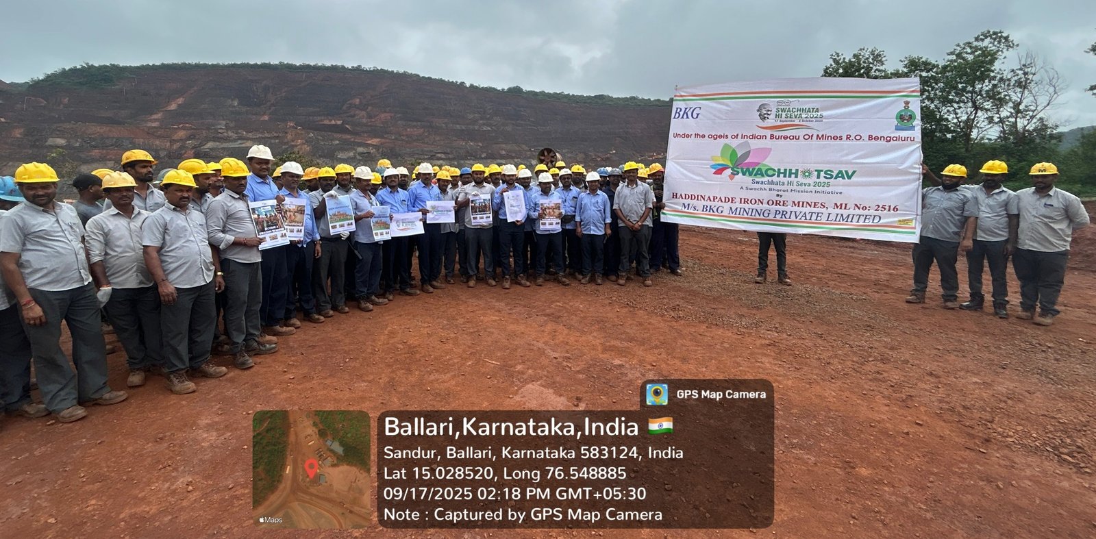 ಬಿಕೆಜಿ ಮೈನಿಂಗ್ ಪ್ರೈವೇಟ್ ಲಿಮಿಟೆಡ್ (ಎಂಎಲ್ ಸಂಖ್ಯೆ 2516) ಹಾಗೂ ಭಾರತೀಯ ಗಣಿ ಬ್ಯೂರೋ, ಬೆಂಗಳೂರು ಇವರ ಸಹಯೋಗದಲ್ಲಿ “ಸ್ವಚ್ಛತಾ ಹಿ ಸೇವಾ – 2025” ಕಾರ್ಯಕ್ರಮಕ್ಕೆ ಸೆಪ್ಟೆಂಬರ್ 17, 2025 ರಂದು ಹದ್ದಿನ ಪಡೆಕಬ್ಬಿಣದ ಅದಿರು ಗಣಿಯಲ್ಲಿ ಅದ್ಧೂರಿ ಚಾಲನೆ ನೀಡಲಾಯಿತು.
