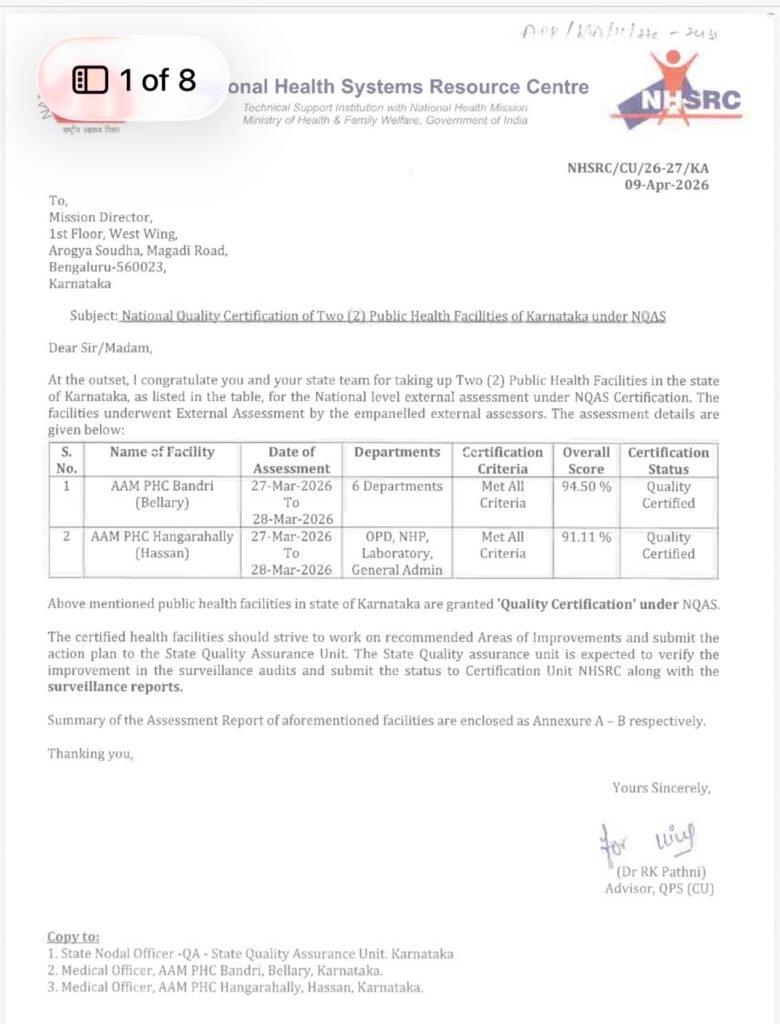 ಈ ಕುರಿತು ಮಾಹಿತಿ ನೀಡಿದ ತಾಲೂಕು ವೈದ್ಯಾಧಿಕಾರಿ (THO) ಡಾ. ಭರತ್ ಕುಮಾರ್ ಅವರು, ಗ್ರಾಮೀಣ ಪ್ರದೇಶಗಳಲ್ಲಿಯೂ ಉತ್ತಮ ಮತ್ತು ಮಾನದಂಡಗಳಿಗೆ ಅನುಗುಣವಾದ ಆರೋಗ್ಯ ಸೇವೆಗಳನ್ನು ಒದಗಿಸುವ ಸರ್ಕಾರದ ಉದ್ದೇಶವನ್ನು ಈ ಸಾಧನೆ ಸ್ಪಷ್ಟಪಡಿಸುತ್ತದೆ ಎಂದರು. NQAS ಮಾನದಂಡಗಳನ್ನು ಕಟ್ಟುನಿಟ್ಟಾಗಿ ಅನುಸರಿಸಿ, ಆಸ್ಪತ್ರೆಯ ಎಲ್ಲಾ ವಿಭಾಗಗಳಲ್ಲಿ ಗುಣಮಟ್ಟವನ್ನು ಕಾಪಾಡಿಕೊಂಡಿರುವುದರಿಂದಲೇ ಈ ಯಶಸ್ಸು ಸಾಧ್ಯವಾಗಿದೆ ಎಂದು ತಿಳಿಸಿದರು.